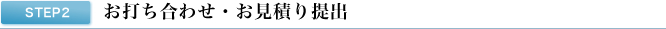 お打ち合わせにて、ご希望の施工内容等をお聞かせいただき、施工内容のご提案をさせていただきます。お見積書も提出させていただきますので、費用面のご確認もお願い致します。その際に、ご質問、ご不明な点など、ご遠慮なくお申し出下さい。